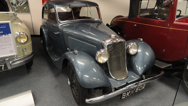 1929 Austin 7 Swallow. Per the sign, Austin made the engine, chassis, and mechanical parts. The Swallow Company made the body. It also said the Swallow Company became Jaguar. That's gotta be worth a Trivial Pursuit pie piece one day.