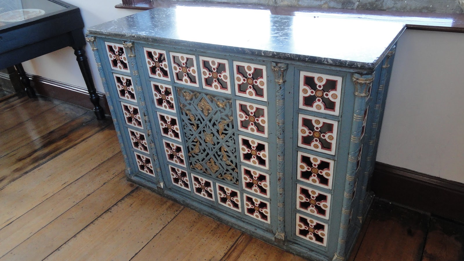 Another fine fireplace. Hard to see but the chair have tiles in their backs.